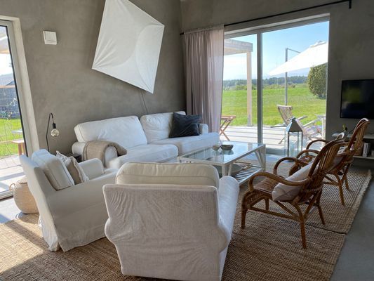 Kök och vardagsrum är generösa i storleken. Från vardagsrum kök har du tillgång till två stora altaner med sköna utemöbler, klotgrill och ostörd utsikt.