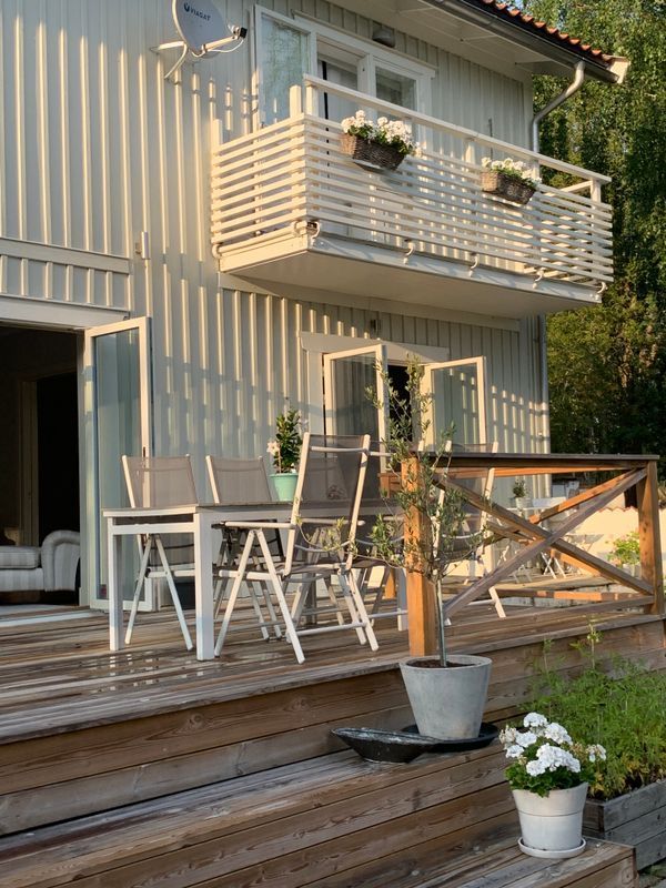 Nyrenoverad 30-talsvilla med härliga sällskapsytor, öppen spis och stor altan i sydvästläge.