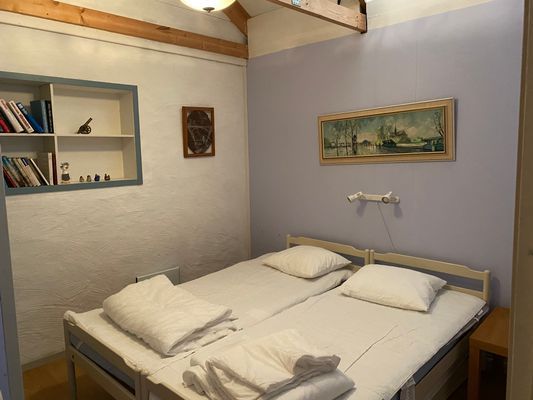 Annexet är en tillbyggnad på ladan, 2 rok. Köket är fullt utrustat. Det finns toalett och dusch. I vardagsrummet finns en liten matplats, soffa och tv. I sovrummet finns en dubbelsäng. Extrasäng/barnsäng kan ställas upp i vardagsrummet.
