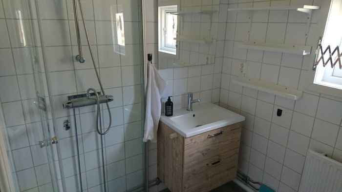 På nedre plan finns vardagsrum med matbord, kök, badrum med dusch och toalett. En bäddsoffa för 2 personer.