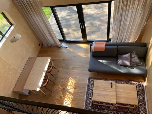 Huset har 4,5 meter i takhöjd, ett fullt utrustat kök med flexibel köksö – perfekt för att förvandla middagen till en grillkväll utomhus. Badrummet är rymligt och påkostat, och hela huset präglas av noga utvalda material som skapar lugn och harmoni.