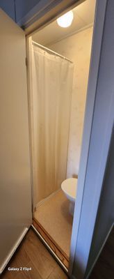 Boendet i vår lilla ”lägenhet” på 12m2 är precis vad som behövs för det enkla sommarlivet; kyl med frysfack, micro, kokplatta, kaffe bryggare, vattenkokare , däremot kan man inte steka mat , det finns ingen fläkt, och så något att äta och dricka på/i . Dusch, toalett samt diskbänk ryms i vår lägenhet.