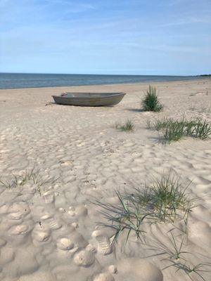 Vakna av sommarljuset, ta på badrocken hoppa i flipflopen, solstolen under armen, promenera sakta på grusvägen i tre - fyra minuter och så har du sand mellan tårna och hela Böda bukten, med kristallklart vatten framför dig…….