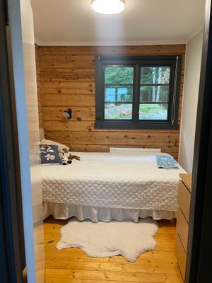 Stugan består av två sovrum (sovrum 1: 90-säng + våningssäng, sovrum 2: 1,20-säng). I storstugan finns matbord, soffa, fåtöljer, öppen spis och en tv. Här finns också gott om golvyta för en luftmadrass om det behövs extra sovplatser. Köket är litet, men komplett utrustat med det nödvändigaste. Badrum med dusch (liten) och toalett. På tomten växer det både lingon- och blåbärsbuskar. Önskas det mer bär är det bara att ta några extra steg ut i skogen.