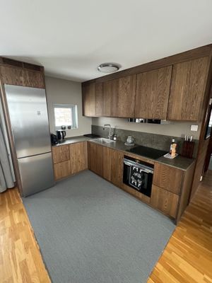 Fyra sovrum och två duschrum. Nybyggt kök i öppen planlösning med väl tilltagen matplats och rymligt vardagsrum.