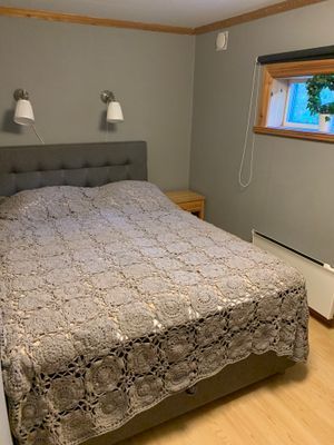 Stugan har två sovrum med en dubbelsäng samt en våningssäng. I vardagsrummet finns en bäddsoffa med plats för ytterligare 2 personer (140cm)