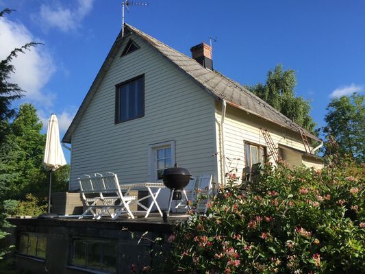 Huset är från 1937 och vi köpte det sommaren 2013 av en gammal dams dödsbo. Hon som bodde här rökte inne men det gör inte vi. Huset är ytrenoverat kontinuerligt under 2013 - 2022. Vi har målat, tapetserat, målat fönster, byggt bord, utedusch och gjort huset till vårt. Vi älskar huset trots skavanker här och där och vi hoppas att ni ska trivas under er vistelse på denna vackra ö!