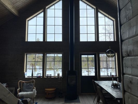 Husets hjärta är självfallet storstugan med sina dryga 5 meter takhöjd, braskamin, en stor ljuvlig soffa att slappa i efter dagens utflykter, matbord med plats för 8 personer, modernt kök och en fantastisk utsikt över Grövelfjäll.