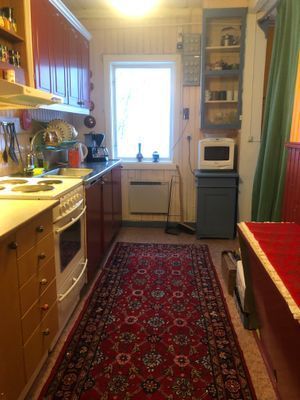 - litet angränsande rum i anslutning till köket som är avgränsat med tygdrapperi.