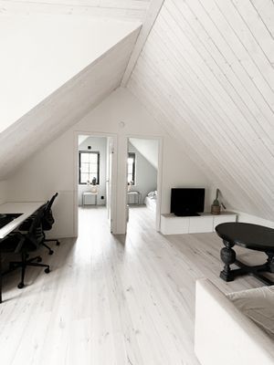 Allrum med bäddsoffa på ovanvåningen om behov finns.