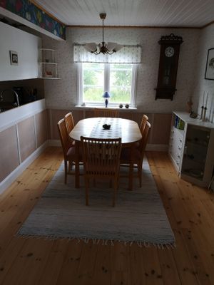Ljust och luftigt med öppen planlösning, På nedervåningen finns fullt utrustat kök med diskmaskin. Vardagsrummet är tillbyggt och därför stort, med två utgångar till två separata uteplatser. En tredje uteplats finns utanför köket där middagarna intas i kvällssol. I vardagsrummet finns täljstenskamin med hög mysfaktor. Modernt badrum med tvättmaskin, golvvärme och dusch. På nedervåningen ett sovrum med dubbelsäng. På övervåningen finns två rymliga gavelsovrum med vardera 2 sängar.