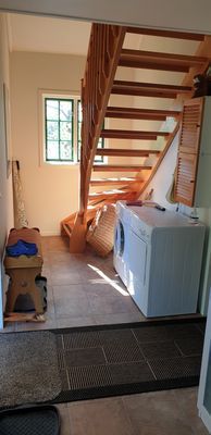 Stugan har ett fullt utrustat kök, WiFi, tvätt, tork och kommunalt vatten.