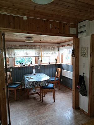Inuti stugan finner du ett komplett kök med matplats, perfekt för att laga och njuta av en god måltid tillsammans. Stugan har även en bekväm braskamin som skapar en varm och inbjudande atmosfär.