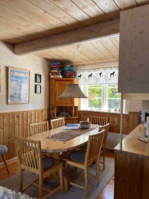 Två nyrenoverade sovrum, ett med dubbelsäng 180cm och ett med våningssäng. Toalett med dusch. Torkskåp. Allrum med öppen spis. Mat-del samt fullt utrustat kök. Bastu i separat byggnad. Uteplats med möbler samt grill och i övrigt allt du behöver.