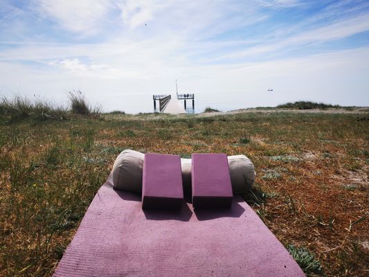 På framsidan finns balkong med utsikt över åkrarna, på vänster sida kommer man in på en terass med jacuzzi och till höger uppfarten. På baksidan är guesthuset anslutet med en tegelvägg till ett internationellt yogahus. Trädgården är delad men du kan när som helst begära privat tid (trädgård, jacuzzi och terasse).