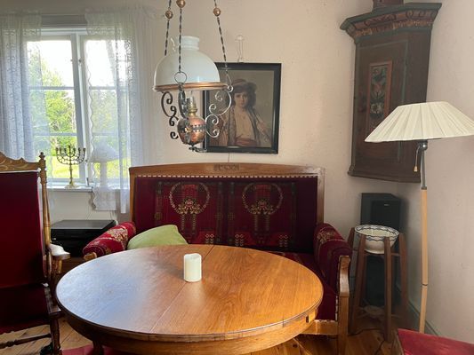 Njut av semestern på en äkta dalagård. Charmig klassiker med de äldsta delarna från 1600-talet. Stor härlig gårdsplan med gräsmatta och sol hela dagen. Vackra lador och uthus. Stort lantkök, tv rum och vardagsrum på nedervåningen. På övervåningen finns ett stort rum med dubbelsäng, ett mindre rum med en 1.20 säng samt ett till stort rum med tre enkelsängar, en dubbelsäng samt en fällsäng. Ni har hela gården för er själva. Grill och två soliga uteplatser finns.