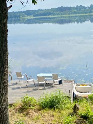 Den vackra tomten är stor med flera sittplatser under äppleträden eller nere vid den privata bryggan. Här finns grill och eldstad. Tomten har vacker sjöutsikt rakt igenom ligger privat och rofyllt. En pärla för dig som söker det genuina och privata. Det är endast 40 min till centrala Stockholm och Uppsala.
