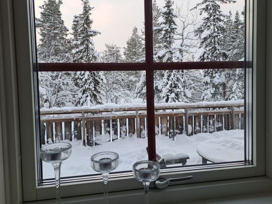 Ett låsbart rymligt skidförråd finns utomhus. Det finns även en stolpe för motorvärmare på gårdsplanen.