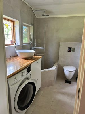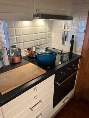 I själva huset finns två sovrum (ett med 160 säng och ett med 120), vardagsrum med ny rentbrännande kamin, modern kök med diskmaskin, groventré och nyrenoverat helkaklat badrum med platsbyggd badkar och golvvärme. Kombi tvätt/tork finns i badrummet. Sedan finns det en gäststuga på 16m2 med dubbelsäng, mini kylskåp, bord. Vi har även 2 indiska madrasser som passar bra för tex barn att sova på, eller vuxna som gillar fast underlag. Det finns fiber och Wi-Fi.