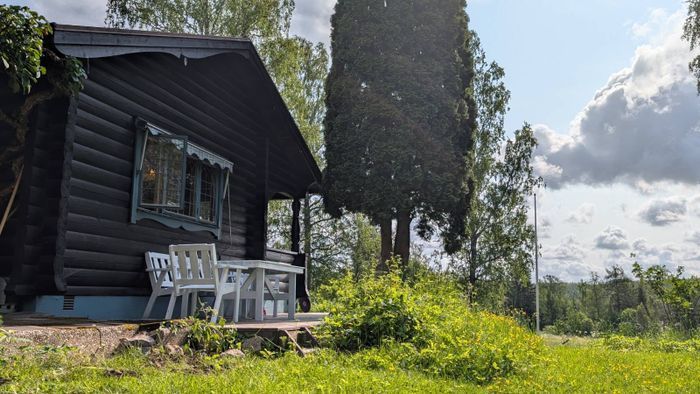Välkommen till vår härliga timmerstuga med en fantastisk utsikt över sjön Gapern, ca 2 mil norr om Karlstad.