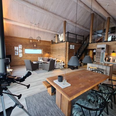 Stugan har en stor och välkomnande hall, allrum med öppet upp till nock (6m i takhöjd) och övervåning. Stora generösa ytor erbjuds så två familjer behöver inte trängas i något läge. Att jobba på distans går också bra då fiber, med fritt wifi, är indraget med 500/500 uppkoppling.