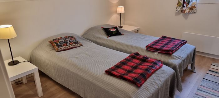 På övervåningen finns två vackra och stora sovrum med två härliga sängar i varje.