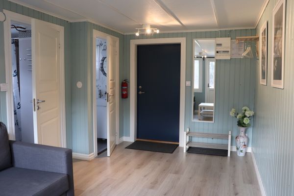 Allrummet är stort med plats för en mysig soffhörna där du kan sitta och kolla på elden i den öppna spisen. Koppla av i soffan, läs en bok, njut av lugnet eller använda dig av WIFI som finns i stugan.