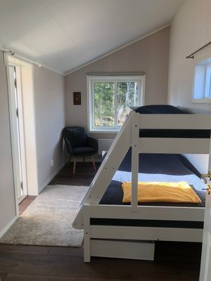 STUGAN ett sovrum med familjesäng nedre 120cm övre 80cm bred(högst 90kg per bedd) samt garderob.Från sovrummet går man ut på altanen som är 15m2 stor och har tak och sidoväggar,det blir som ett extra rum.Sovrum nr 2 har en dubbelsäng som är 140cm bred samt en garderob.Från sovrummet kan man gå ut på ett trädäck där det finns utemöbler.Vardagsrummet har soffa samt matplats och öppen spis,tv med chromecast och wifi.Det lilla köket är fullt utrustat med nya vitvaror kylfrys,spis,miccro kaffebryggare och dyl.Badrummet har wc dusch och tvättmaskin.Stugan ligger i en stugby vid Virserumssjön och Dackestupet där det finns cyckelbanor på sommaren och skidanläggning på vintern.Drygt 100m till badplatsen och en promenad på 15min till byn Virserum där det finns mataffärer caféer pizzerior restaurang och dyl.Det finns möjligheter att fiska och vandringsleder nära området.UTFLYKTER astridlindgrensvarld 50km. 200m det finns mycket att göra Älgparker loppisar museum och dyl