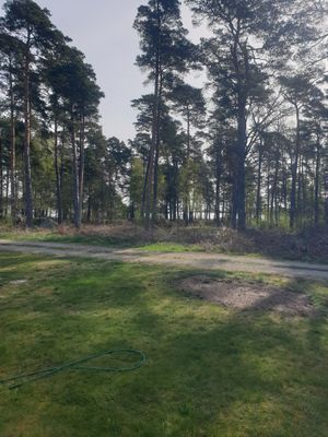 Liten mysig stuga lagom för två vuxna och två mindre barn. Avskilt läge utan nära grannar i en fin sjöhage, ca 200 m till havet och gångavstånd till badplats tyvärr hundbadförbud på själva badplatsen men cykelavstånd till fin sandstrand med bad där hundar är godkända badgäster.