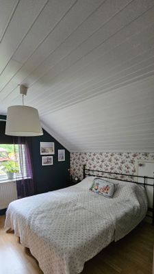 Välkomna till oss Vi erbjuder er att bo i vår gäst stuga. Stugan har sovrum, tv rum, badrum, bastu, kök ballkong mot sjön å kvällssol.