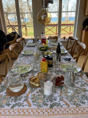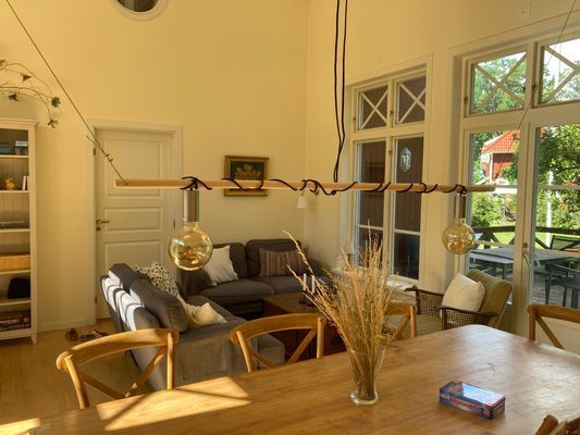 Uteplatser med sol hela dagen. Stora sociala ytor där man kan umgås inomhus ifall vädret inte är det bästa. Tomten inbjuder till både lek och bollspel. Cyklar finns tillgängliga att låna om man vill utforska närområdet.