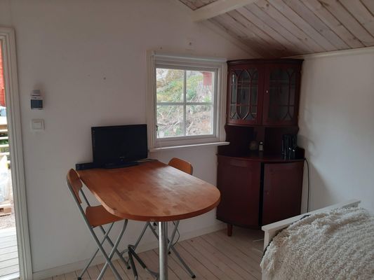 En tillfällig övernattnings stuga med underbar utsikt mitt i naturen! Om man endast hyr själva stugan finns inget avlopp och badrum. Däremot finns TV med chromecast, dass, micro, tekokare, litet kylskåp och vatten får man hämta från utekran i en vattendunk.