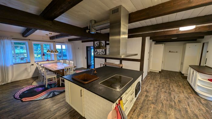 Detta stora, designmöblerade semesterhus (450 m²) har plats för upp till 8 personer och har 3 sovrum, ett vardagsrum/sovrum, en vinterträdgård och en bubbelpool. Kök med separat matplats. Fiberoptisk anslutning och W-Lan. Projektor inkl. duk och TV finns att tillgå. Uthyrning främst per vecka eller minst 4 nätter. Högsäsong 1 maj - 30 september. Städning ingår. Extra för sänglinne/handdukar (250 kr/person). Fastigheten är hästskoformad. Den centrala delen (vårt erbjudande) hyrs ut till gäster. Den högra flygeln är bebodd. Den vänstra flygeln hyrs också ut till gäster då och då via en annan annons (upp till 8 personer).
