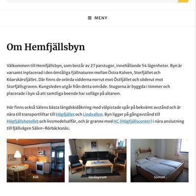 Stuga i parhus, 50 m2. 4 sängar i sovrum plus 2 extrabäddar i allrum. Se planlösningsskiss. Badrum med WC, dusch och torkskåp. Rymligt allrum i kombination med kök. Välutrustat kök med kyl, frys, microugn, spis, ugn, diskmaskin och stor matplats. Bekväm soffgrupp som kan ändras till två extrabäddar. Öppen spis och TV. Ca 300 meter till Högfjällshotellet med restaurang, skidshop, Icabutik, skidbuss mm. Längdåkningsspår inpå knuten. Närbelägen transportlift till Högfjällets liftsystem