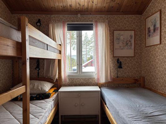 I stugan finns det tre sovrum samt en dagbädd i anslutning till vardagsrummet.