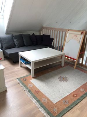 På övervåningen 2 sovrum med 2 sängar i varje rum, allrum med bäddbar soffa samt toalett.