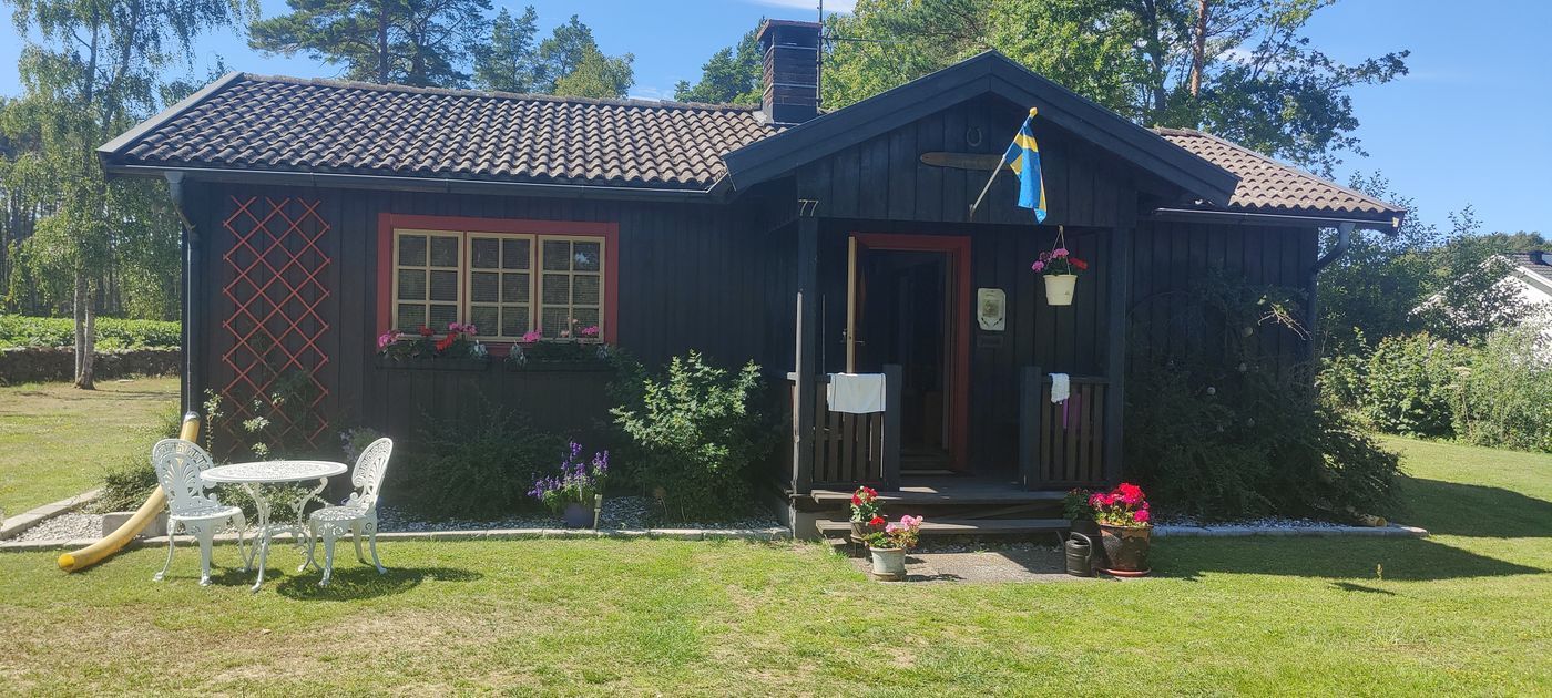 Stugan: Ett sovrum med två bäddar samt två mindre sovrum med nya enkelsängar. Kombinerat kök och allrum. I allrummet finns matbord, soffgrupp och TV (med cromecast och Viasat). Rikligt med köksredskap och ett kök med kyl, frys, mikrougn och elspis med ugn. Fräscht badrum med WC och dusch. Elvärme, luftvärmepump och kommunalt vatten. Stor altan med trädgårdsmöbler och grill. Ej rökning inomhus. På tomten finns även en gäststuga med två bäddar.