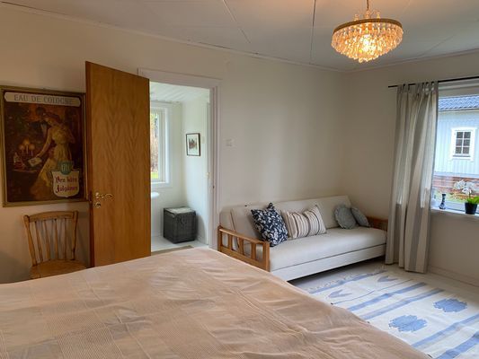 Stugan är renoverad under senare år och har en härlig matplats med panoramautsikt mot sjön. Köket ligger i öppen anslutning till matplatsen, diskar gör du för hand. Två stora sovrum med en dubbelsäng i varje sovrum samt det ena sovrummet har dessutom en bäddsoffa som fungerar för två personer. Ett vardagsrum med en mysig soffgrupp, tv med standard kanaler, wifi finns givetvis. Badrummet är litet men helkaklat och fräscht.