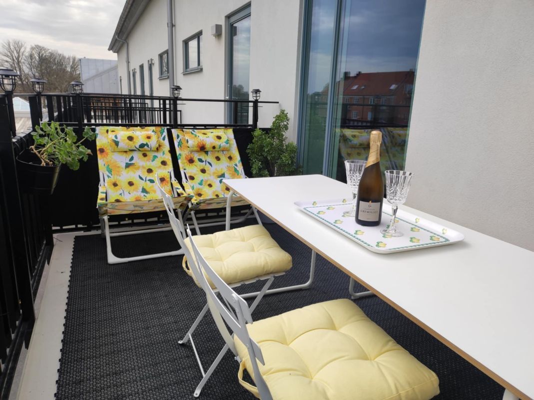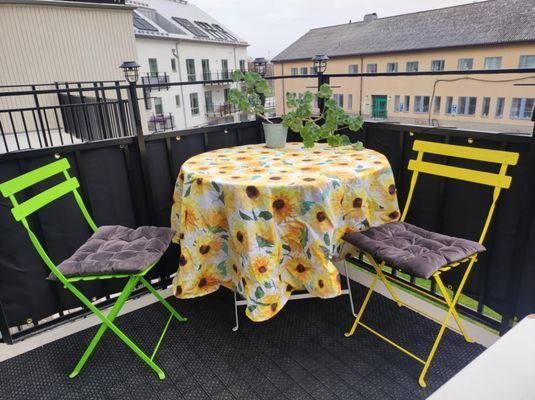 Nybyggd mini-tvåa med stor balkong. Sovrum med delbar säng och TV. Bra wifi.
