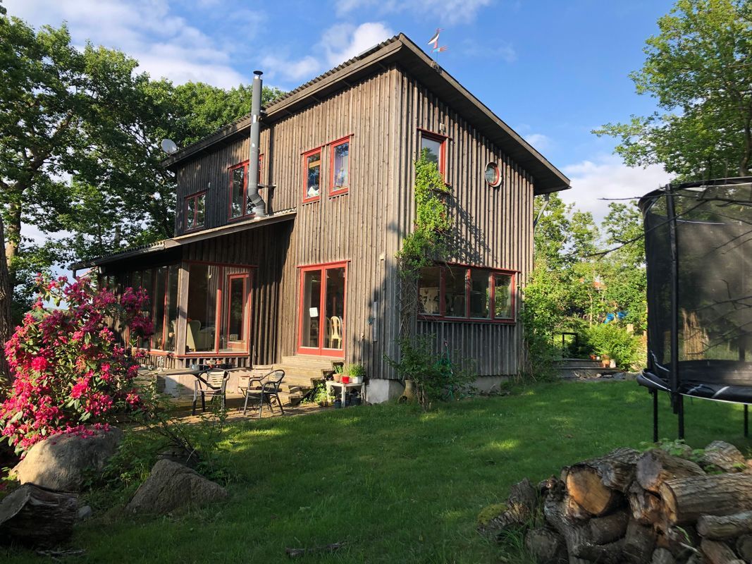 Fantastiskt fin villa i trä och vackra färger uthyres under juli månad. Bostaden ligger vid en återvändsgränd på en lummig del av ön. Den har öppen planlösning med kök och vardagsrum i ett, balkong ut mot trädgården och uteplatser på tre sidor av huset samt en fjärde med utsikt över havet. På nedervåningen finns ett sovrum med en dubbelsäng och på ovanvåningen (dubbel takhöjd i del av huset) finns två sovrum med dubbelsäng i vart och ett. Dusch och badkar, tvättmaskin och tork. Kyl och frys, glaskeramik häll.