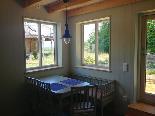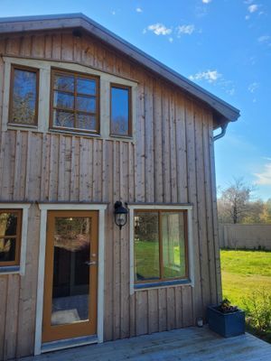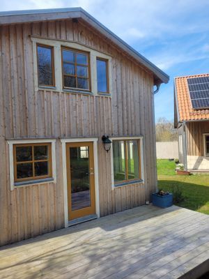 Huset består av en öppen planlösning på bottenplan med kök och litet vardagsrum. I vardagsrummet finns även ett liten loft med arbetsyta samt möjlighet till madrass på golvet. På bottenplan finns även ett badrum med duschkabin och tvättmaskin. Ovanvåningen består av ett sovrum. Huset delar gräsmatta med grannhuset men har egen altan. Parkering möjlig på plats. Huset har inget wifi men bra mobiltäckning.