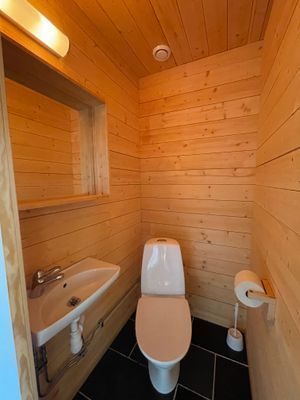 Öppen planlösning med kök och vardagsrum i ett stort rum med högt i tak. Här finns braskamin, smart-tv med apple-tv och Wifi via fiber. Kök med spis, ugn, kyl/frys, diskmaskin, micro och barnstol. Matsalsbord för 6 personer och ett extra bord för 2 personer. Ett wc och ett separat badrum med dusch, bastu och en kombinerad tvättmaskin och torktumlare. Altan för grillning mm, weber grill finns.