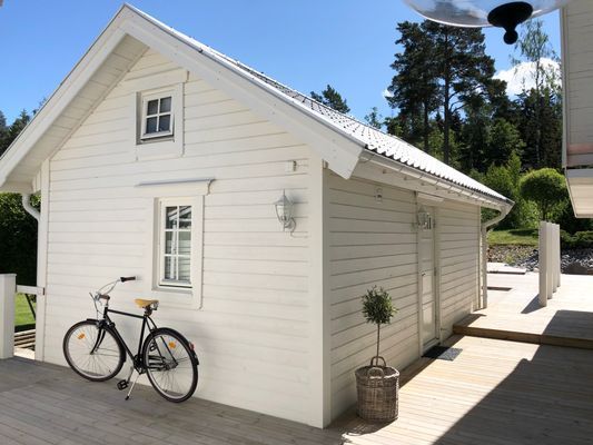 Trevligt attefallshus byggt 2019 med stort badrum, klädkammare, kök, sovloft samt rymlig uteplats, tvättmaskin, egen parkering. Beläget i ett villaområde, närhet till naturområde och sjöar (Mälaren i närområdet). Med bil 10min till Sthlm Barkarby outlet. Med pendeltåg 30min till Sthlm Centralstation. Avståndet till pendelstation 2km. Huset ligger i hörnet på en villatomt.